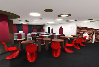 オフィスについては、クライアント様のご要望をカタチにし、快適なオフィス環境をご提供するために、何度もお打合せをおこない、高精度のCGパースでイメージの共有を図りながら作業を進めていきます。